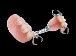 入れ歯は取り外しが可能な人工の歯です。隣接する歯に金具をかけて固定しますが、ブリッジと異なり歯を大きく削る必要がありません。また、食後に取り外して歯磨きができるため、口腔内を清潔に保つことができます。