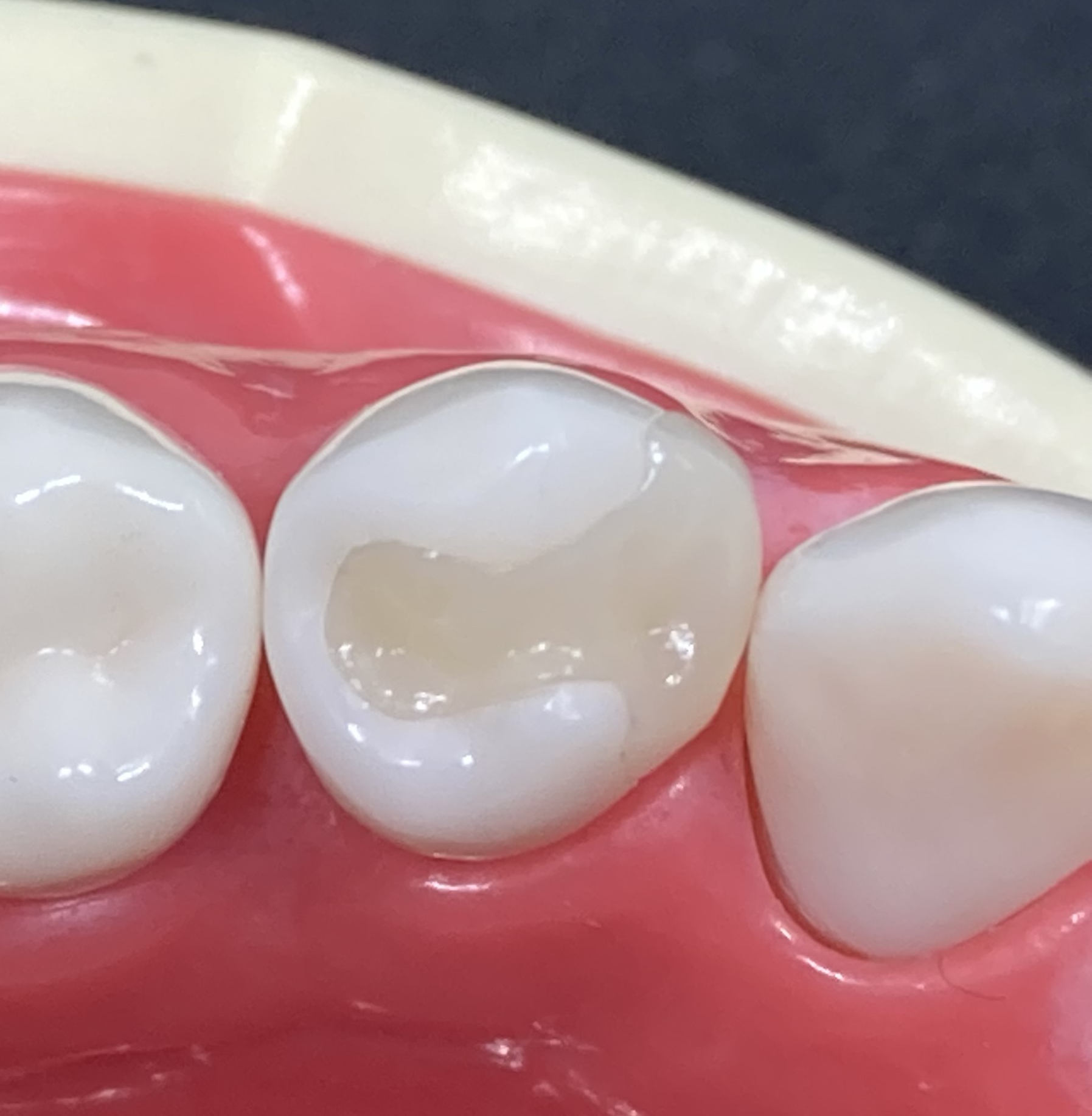・欠けた部分の表面をわずかに削り、プラスチック製の白い詰め物をする