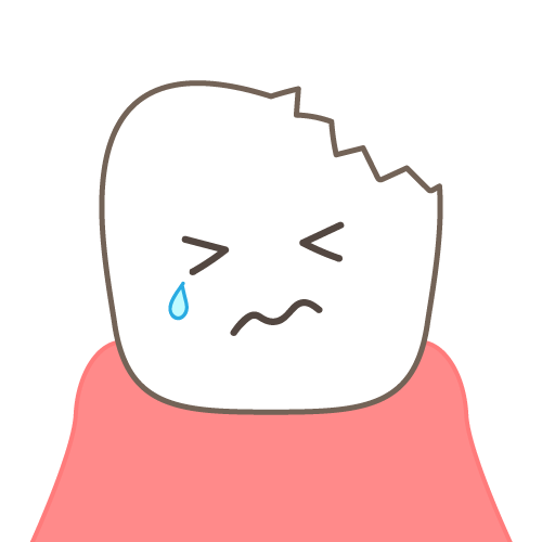 ヒビが奥まで入って歯が一部欠けてしまうこともあります。欠け方によって詰め物で治せる場合、抜歯をしなければならない場合など様々です。